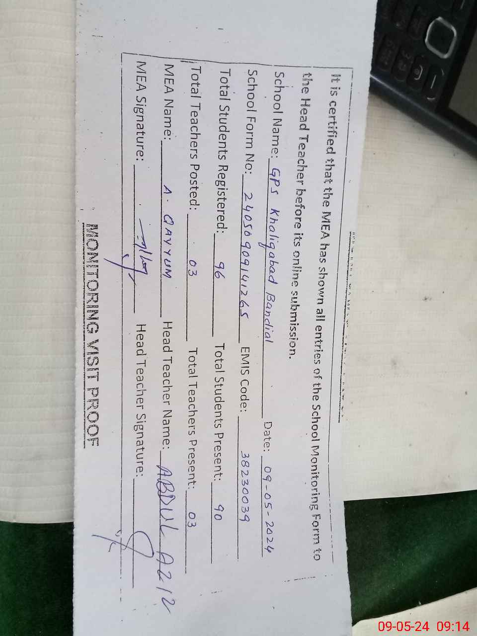 | EMIS Code: 38230039 | Name of School: GPS KHALIQ DAD BANDIAL | |||