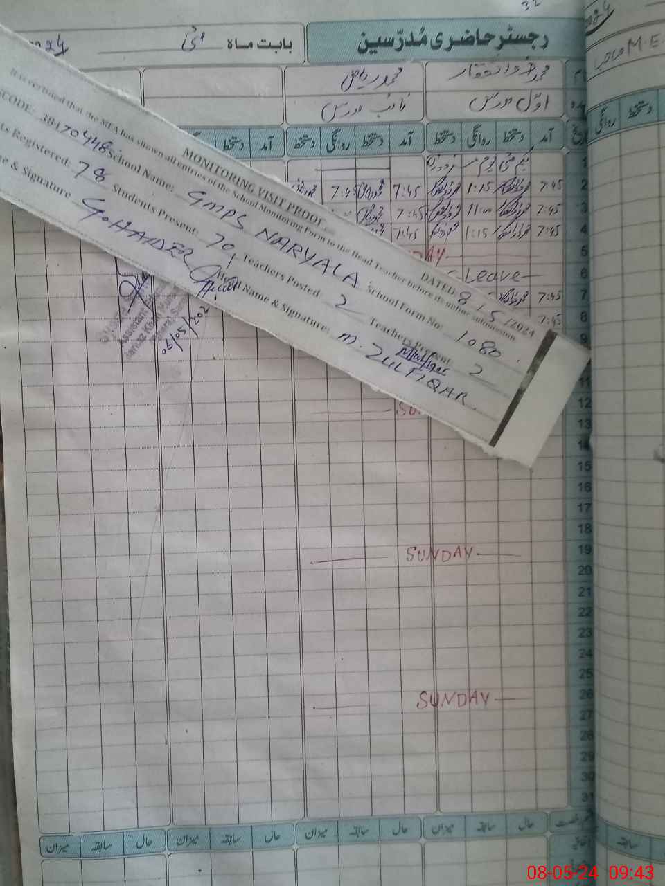 | Attendance Register | Head Teacher | MEA with School | Visit Proof |