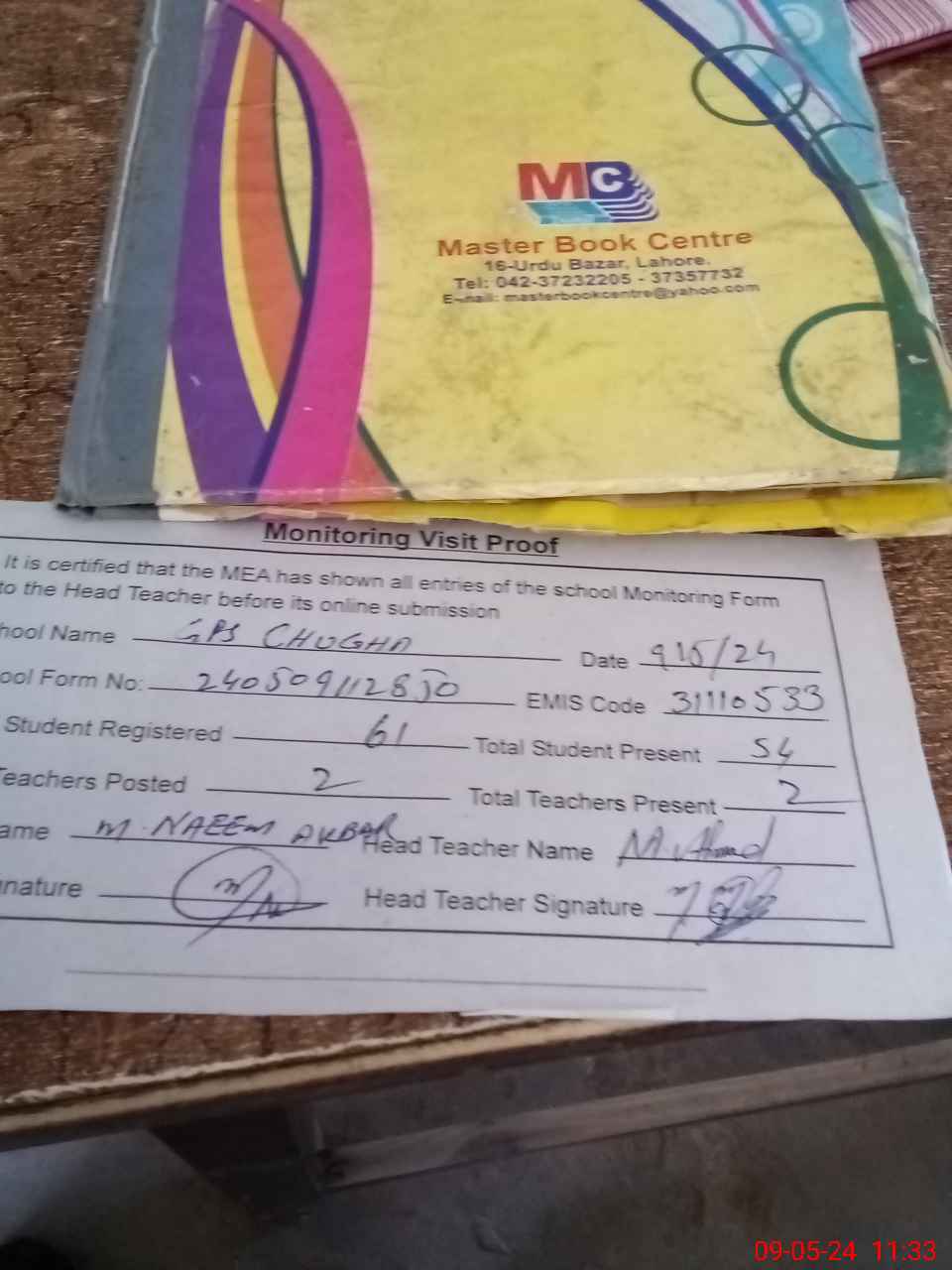 | EMIS Code: 31110533 | Name of School: GPS CHUGHA WALI | |||