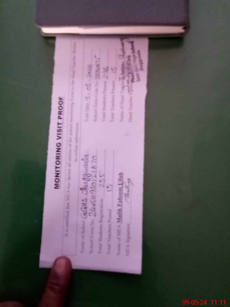 | Attendance Register | Head Teacher | MEA with School | Visit Proof |