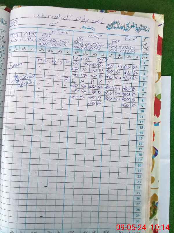 | CNIC | Full Name | Designation | R/C | Absence During Last Calender Month |
