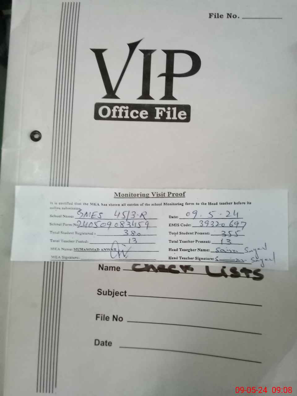 | EMIS Code: 39320697 | Name of School: GMES CHAK 45/3-R | |||