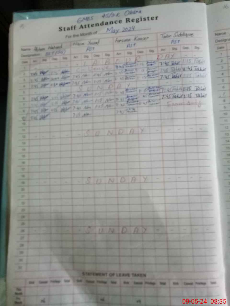 | 35**** | Ta**** Sa**** | PST | Regular | 3 | 0 | 0 | 0 | 0 | 0 | 0 | 0 | 3 | Exam Duty |