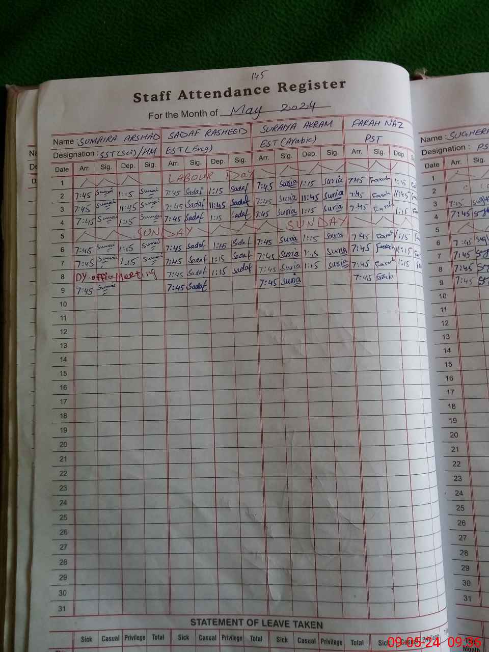 | Leave | Duty | Absent | Maternity | Medical | Ex- Pak |