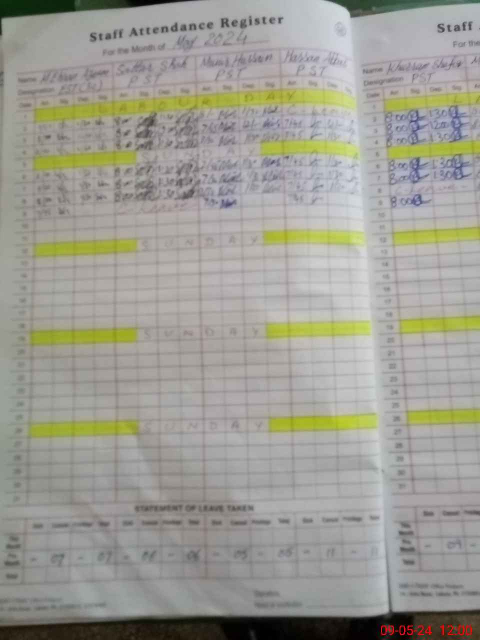 | 36**** | Sa**** Sh**** | PST | Regular | 2 | 0 | 0 | 0 | 0 | 0 | 0 | 0 | 2 | Casual |