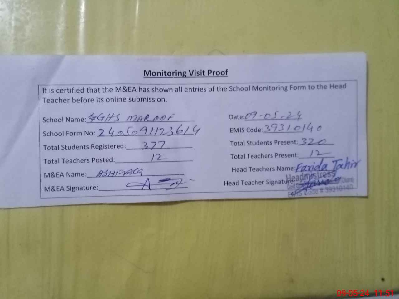 | EMIS Code: 39310140 | Name of School: GGHS MAROOF | |||