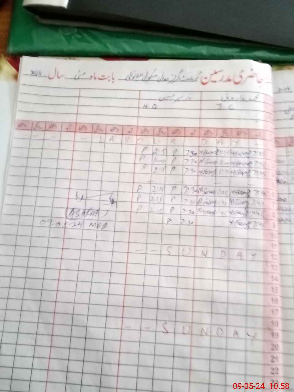 | CNIC | Full Name | Designation | R/C | Absence During Last Calender Month |