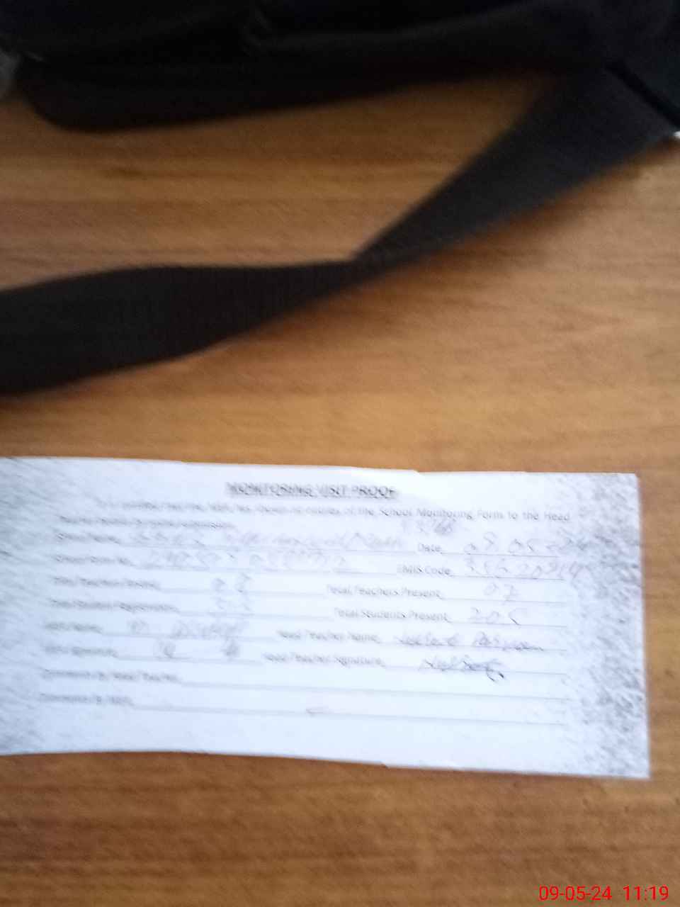 | Monitoring Date: 09-05-2024 | Start Time: 09-05-2024 10:31 AM | End Time: 09-05-2024 11:55 AM | Name of MEA: Mu**** As**** | |
