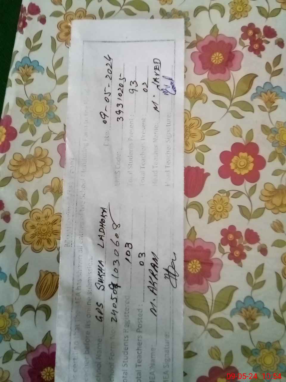 | Name: MO**** LA**** SH**** Designation: (School Headmaster's/Headmistress's) EST Phone/Cell Number: 03**** |