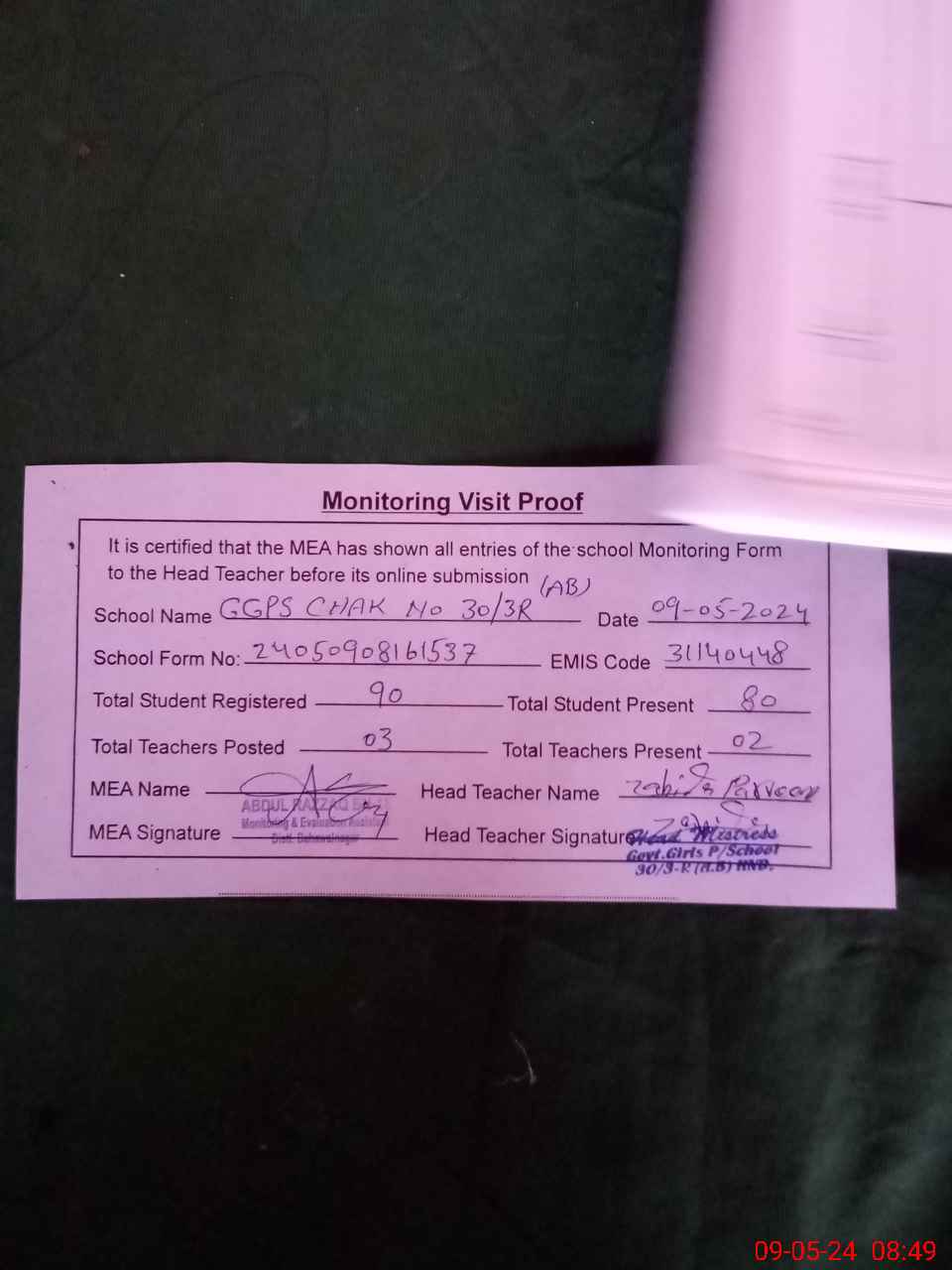 | EMIS Code: 31140448 | Name of School: GGPS CHAK 30/3-R AB | |||