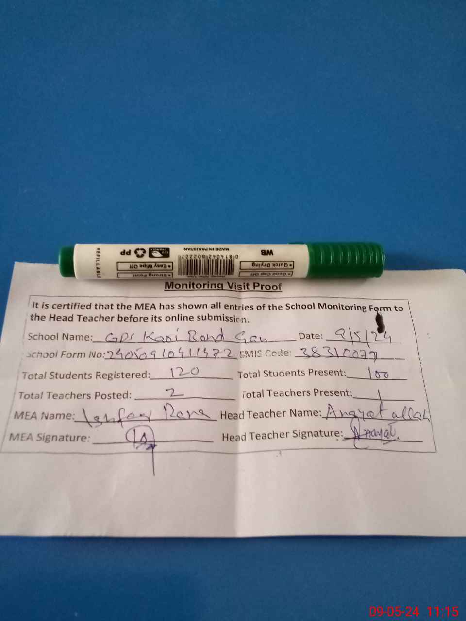 | EMIS Code: 38310077 | Name of School: GPS KARI BOND GAN PO KANDAL ISA KHEL | |||