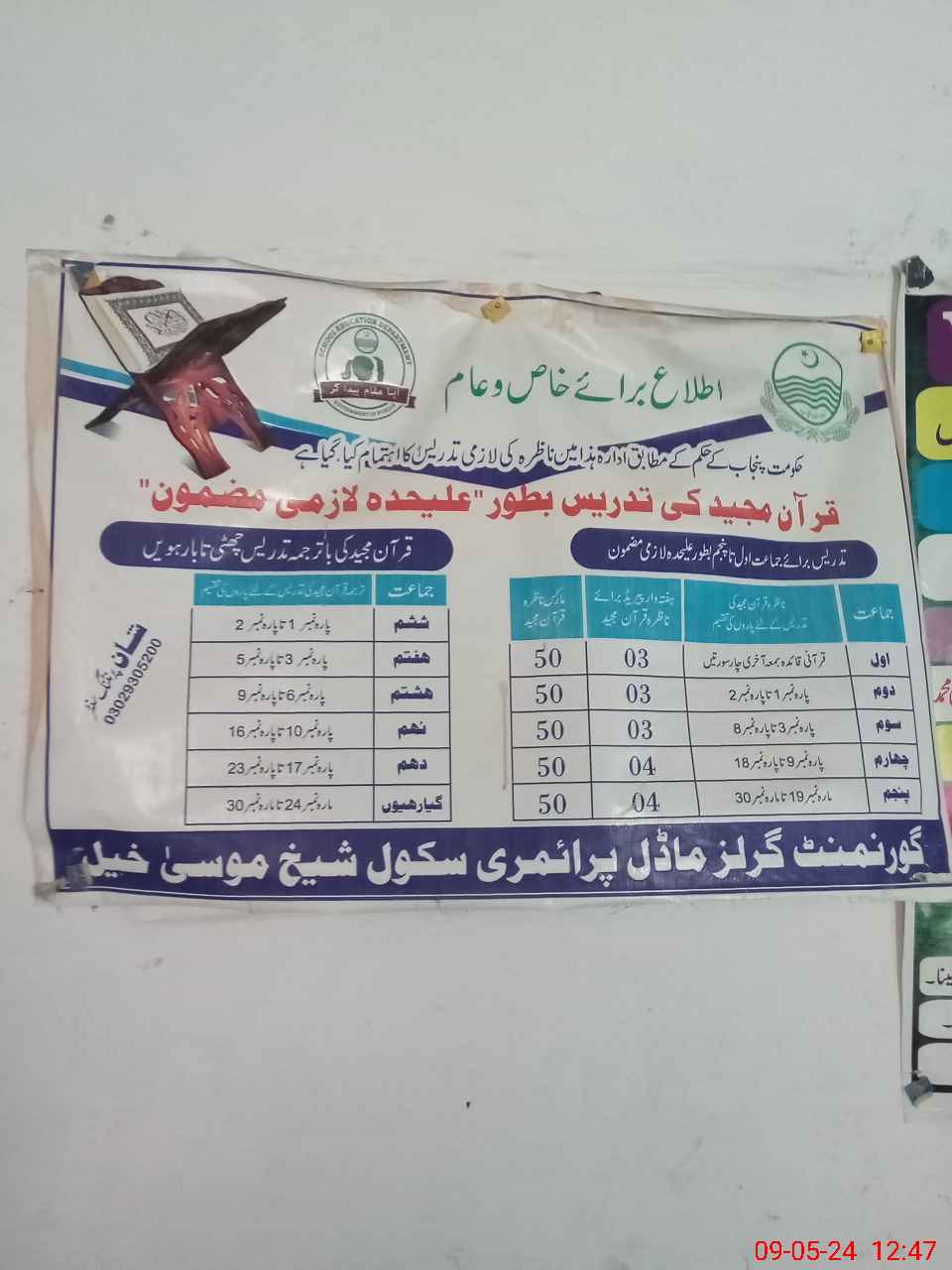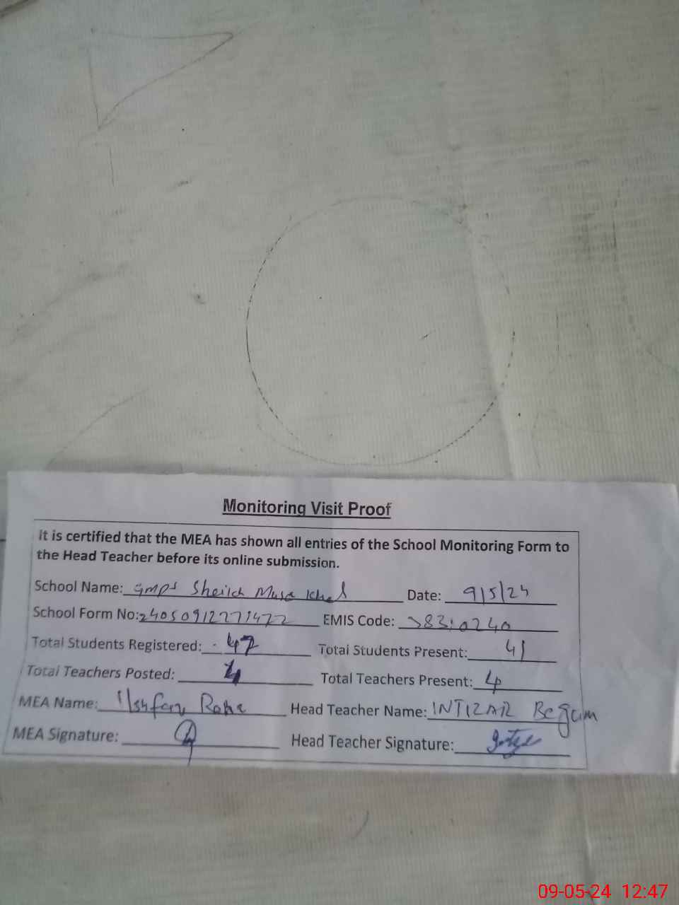 | EMIS Code: 38310240 | Name of School: GMPS SHEIKH MUSA KHEL | |||