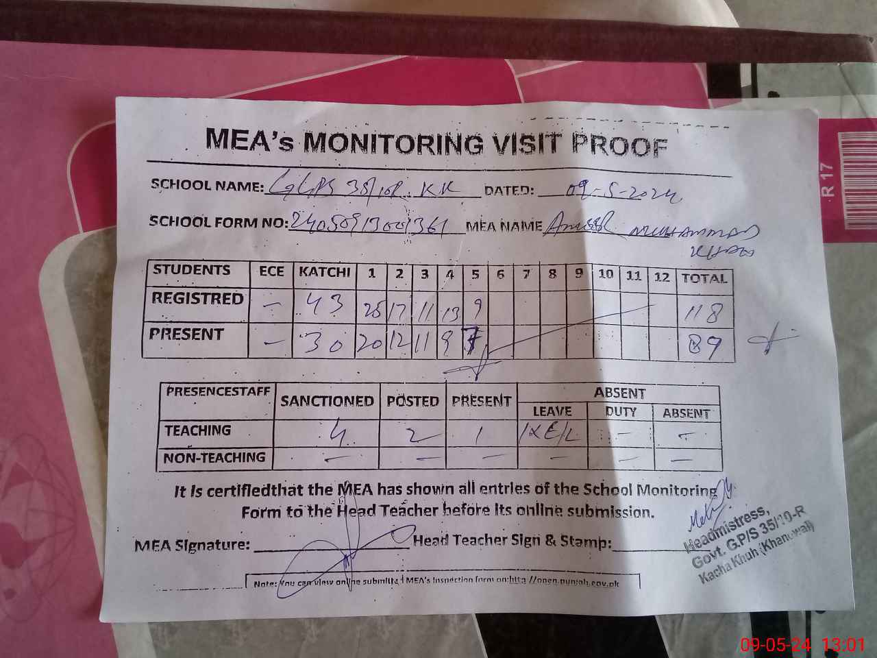 | EMIS Code: 36420473 | Name of School: GGPS 35/10-R, KACHA KHUH | |||