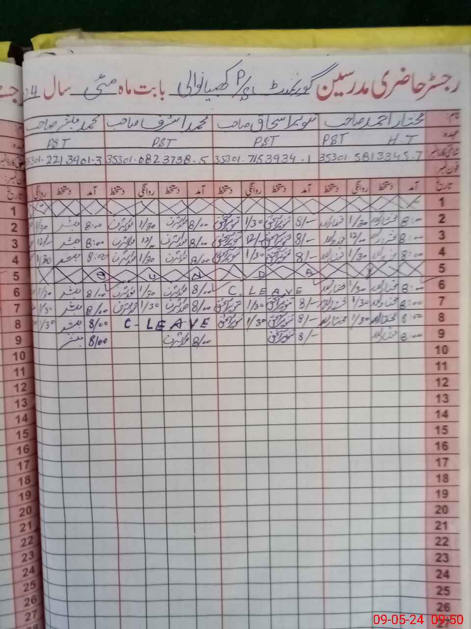 | CNIC | Full Name | Designation | R/C | Absence During Last Calender Month |