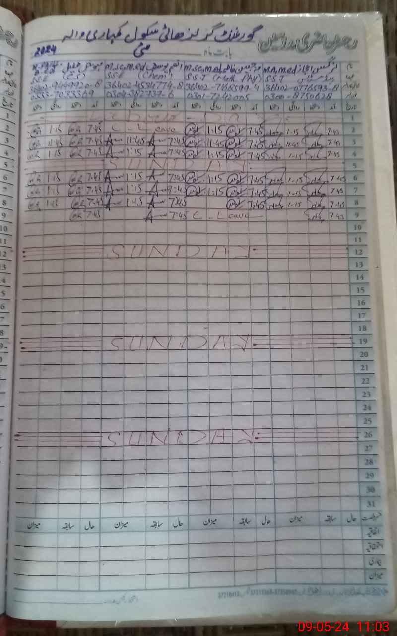 | Name: Ma**** Fa**** Designation: (School Headmaster's/Headmistress's) S.S.T.(Science ) Phone/Cell Number: 03**** |
