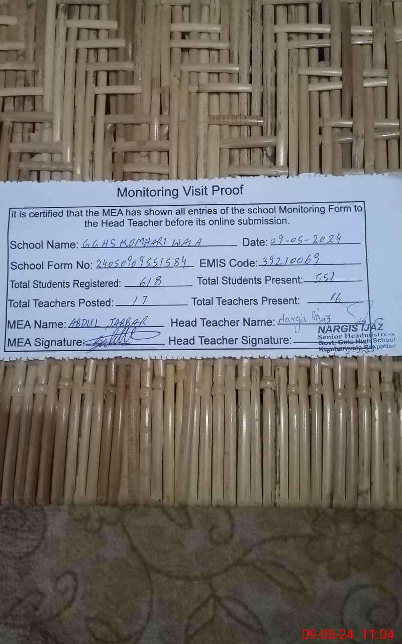 | EMIS Code: 39210069 | Name of School: GGHS KOMHARI WALA | |||