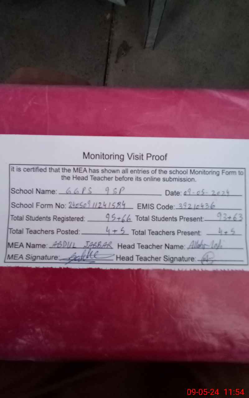 | EMIS Code: 39210436 | Name of School: GGPS 9 SP | |||