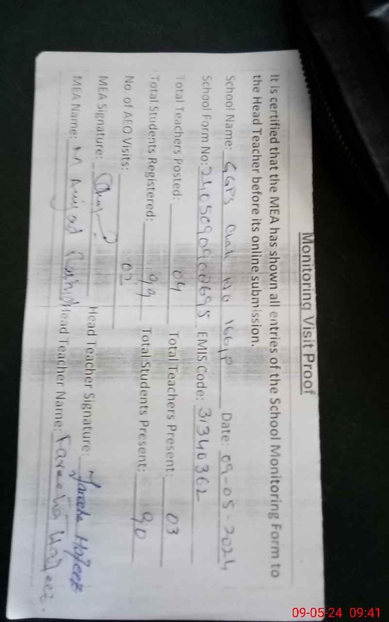 | Certified that this School was Inspected by the Undersigned MEA/DMO Today and the Information Stated Above is as Per Record. | |||||