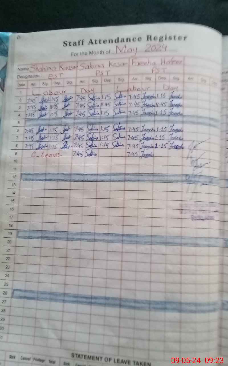 | Attendance Register | Head Teacher | MEA with School | Visit Proof |