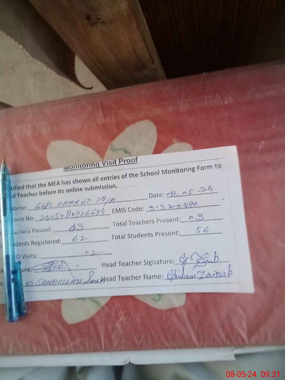 | EMIS Code: 31320490 | Name of School: GGPS CHAK NO.28/A | |||