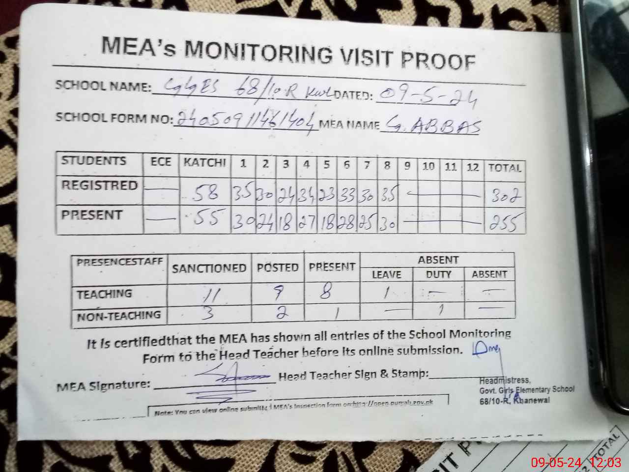 | EMIS Code: 36420099 | Name of School: GGES 68/10-R, KHANEWAL | |||