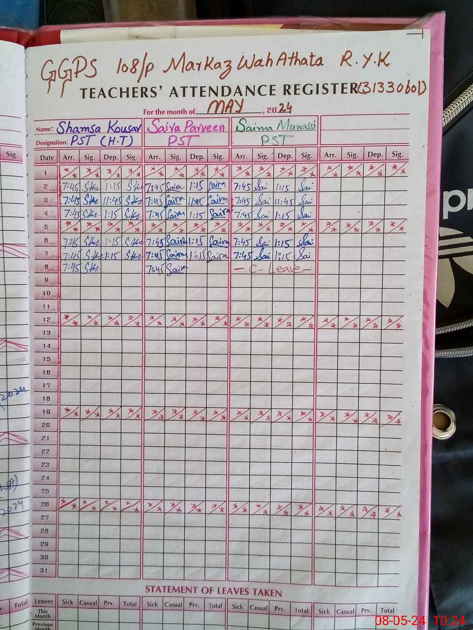 | Name: Sa**** Pa**** Designation: (School Headmaster's/Headmistress's) PST Phone/Cell Number: 03**** |