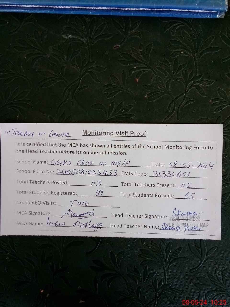 | Certified that this School was Inspected by the Undersigned MEA/DMO Today and the Information Stated Above is as Per Record. | |||||