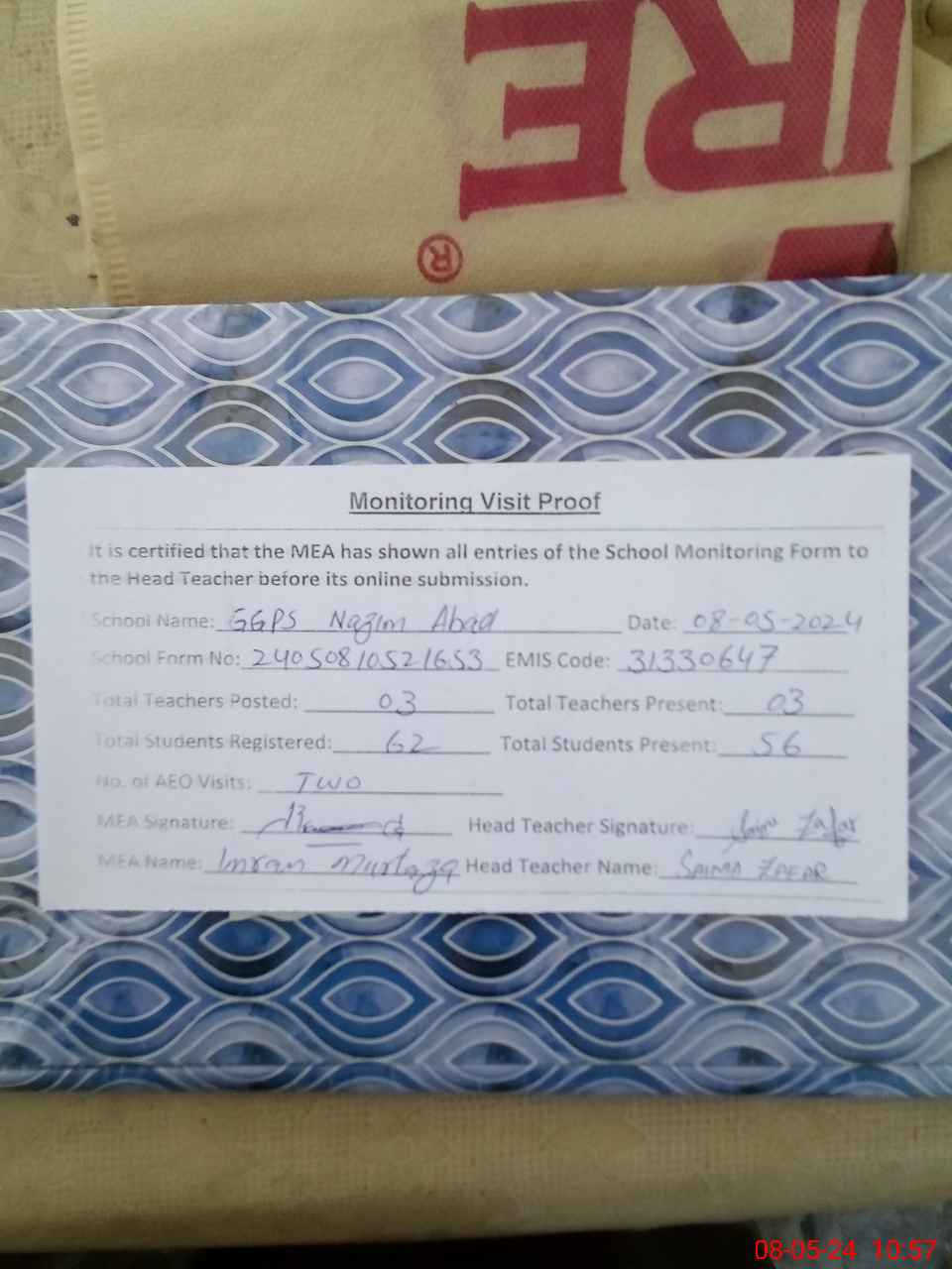 | EMIS Code: 31330647 | Name of School: GGPS NAZIM ABAD | |||