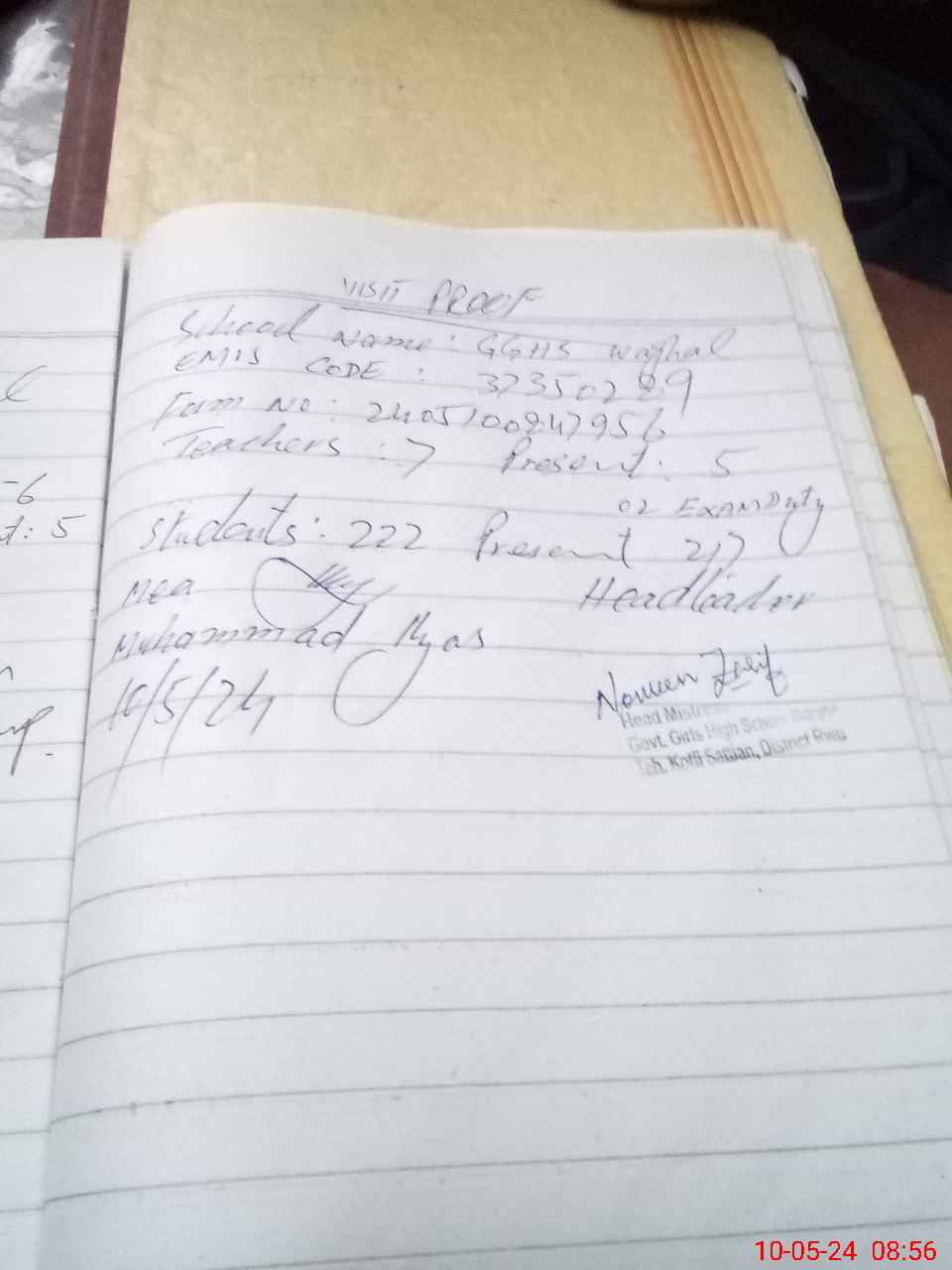 | EMIS Code: 37350289 | Name of School: GGHS WAGHAL | |||