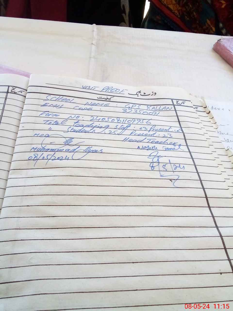| Attendance Register | Head Teacher | MEA with School | Visit Proof |