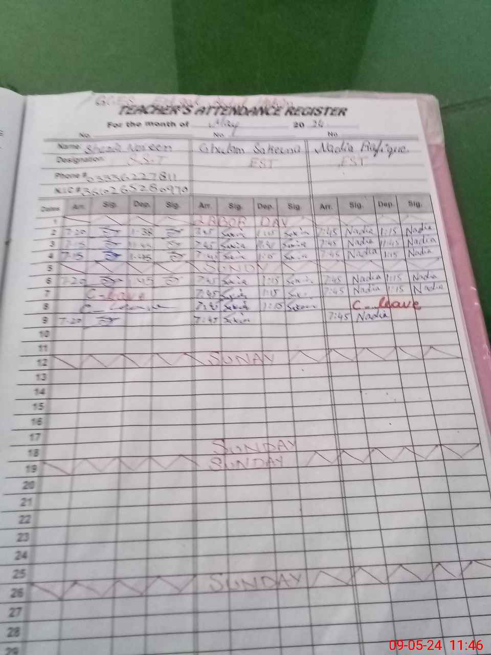 | Name: SE**** KH**** Designation: (School Headmaster's/Headmistress's) S.S.T SC Phone/Cell Number: 03**** |