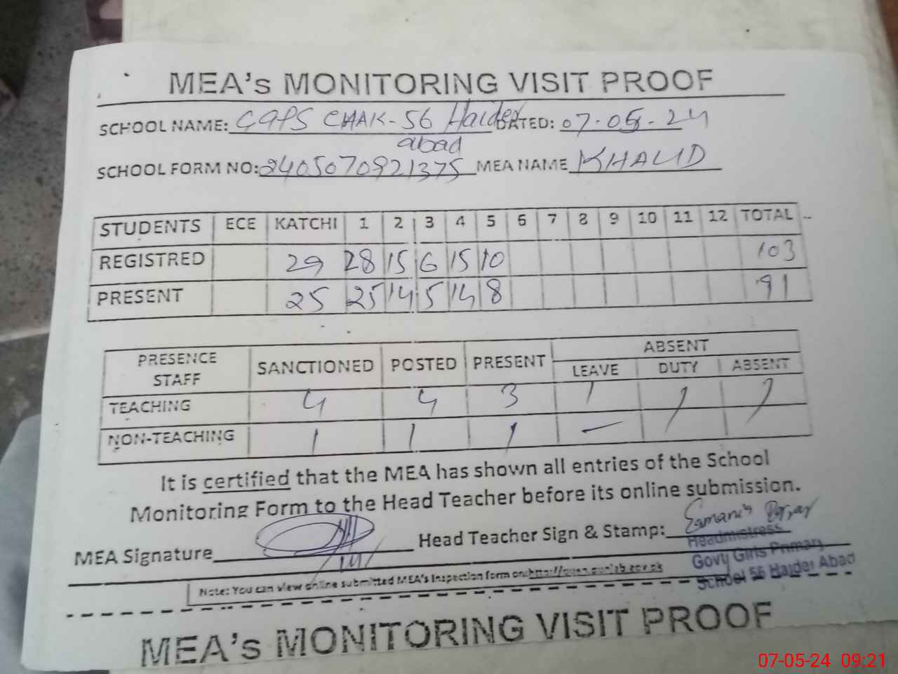 | EMIS Code: 36430406 | Name of School: GGPS CHAK 56 HAIDER ABAD, TULAMBA | |||