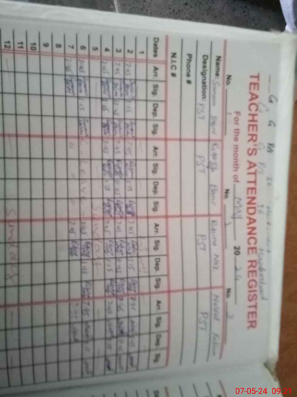 | Name: Sa**** Iq**** Designation: (School Headmaster's/Headmistress's) PST Phone/Cell Number: 03**** |