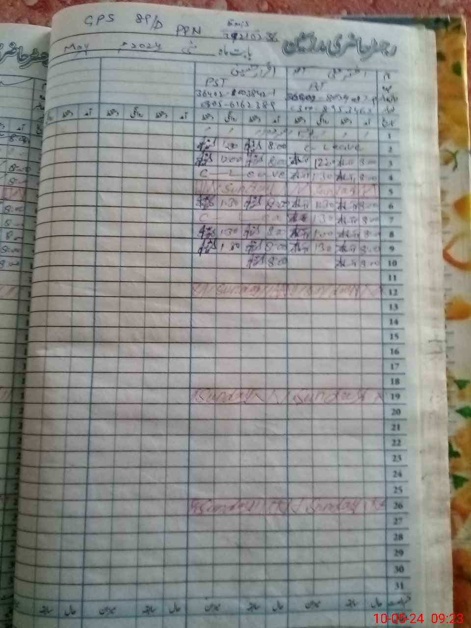 | CNIC | Full Name | Designation | R/C | Absence During Last Calender Month |