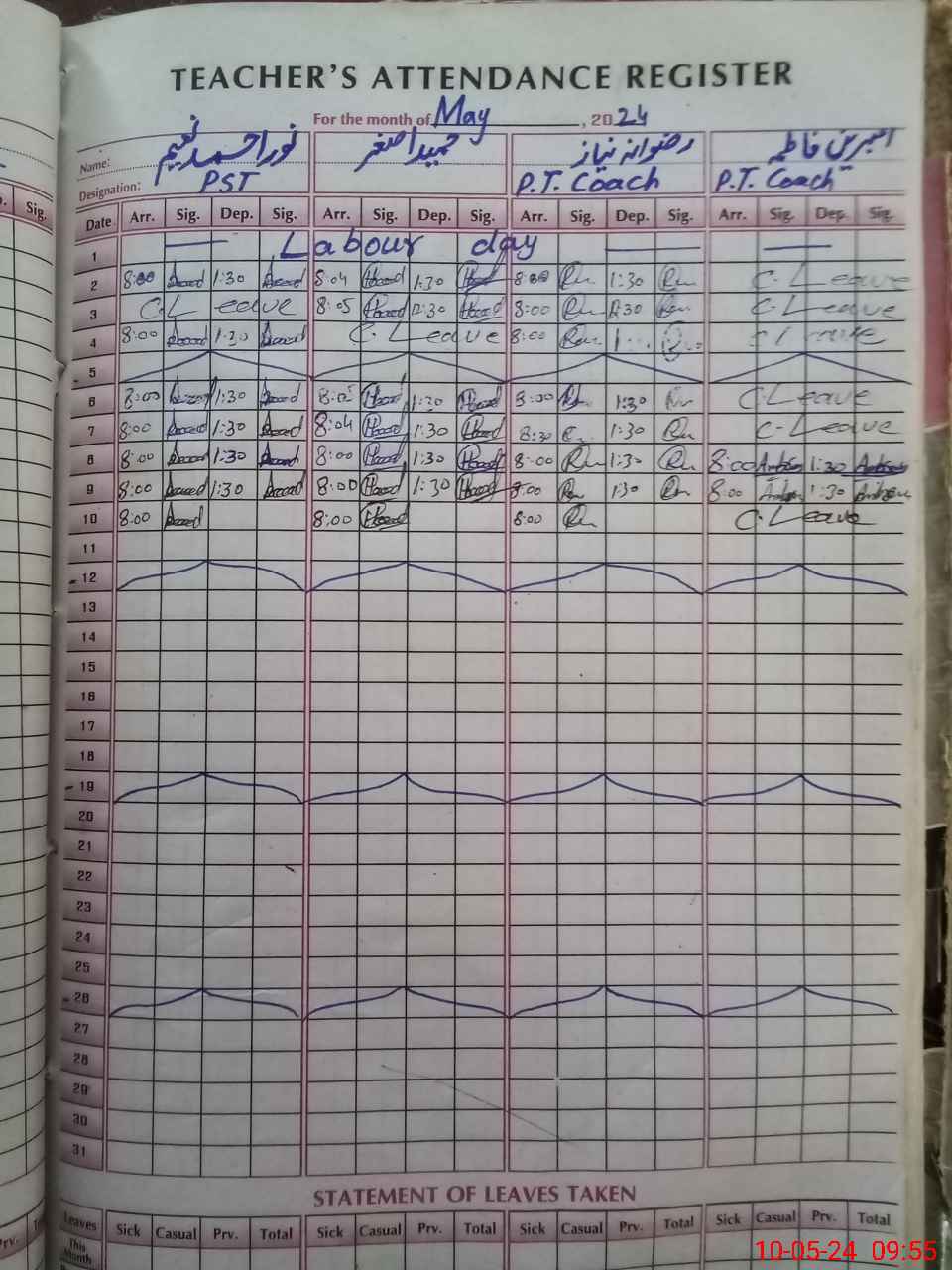 | Leave | Duty | Absent | Maternity | Medical | Ex- Pak |