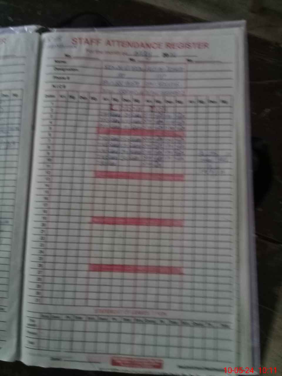 | CNIC | Full Name | Designation | R/C | Absence During Last Calender Month |
