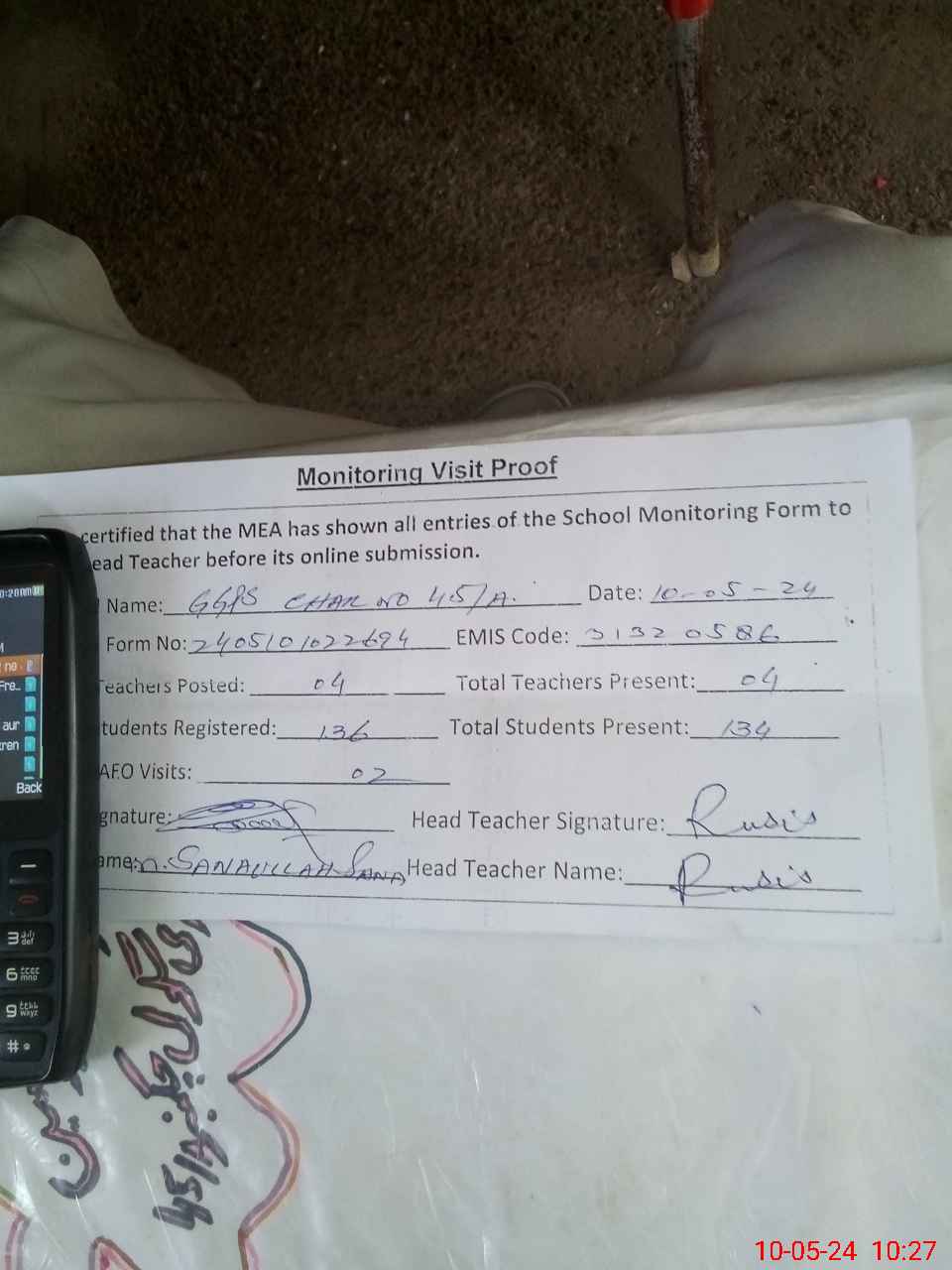 | Monitoring Date: 10-05-2024 | Start Time: 10-05-2024 10:07 AM | End Time: 10-05-2024 10:28 AM | Name of MEA: Mu**** Sa**** Ul**** Sa**** | |