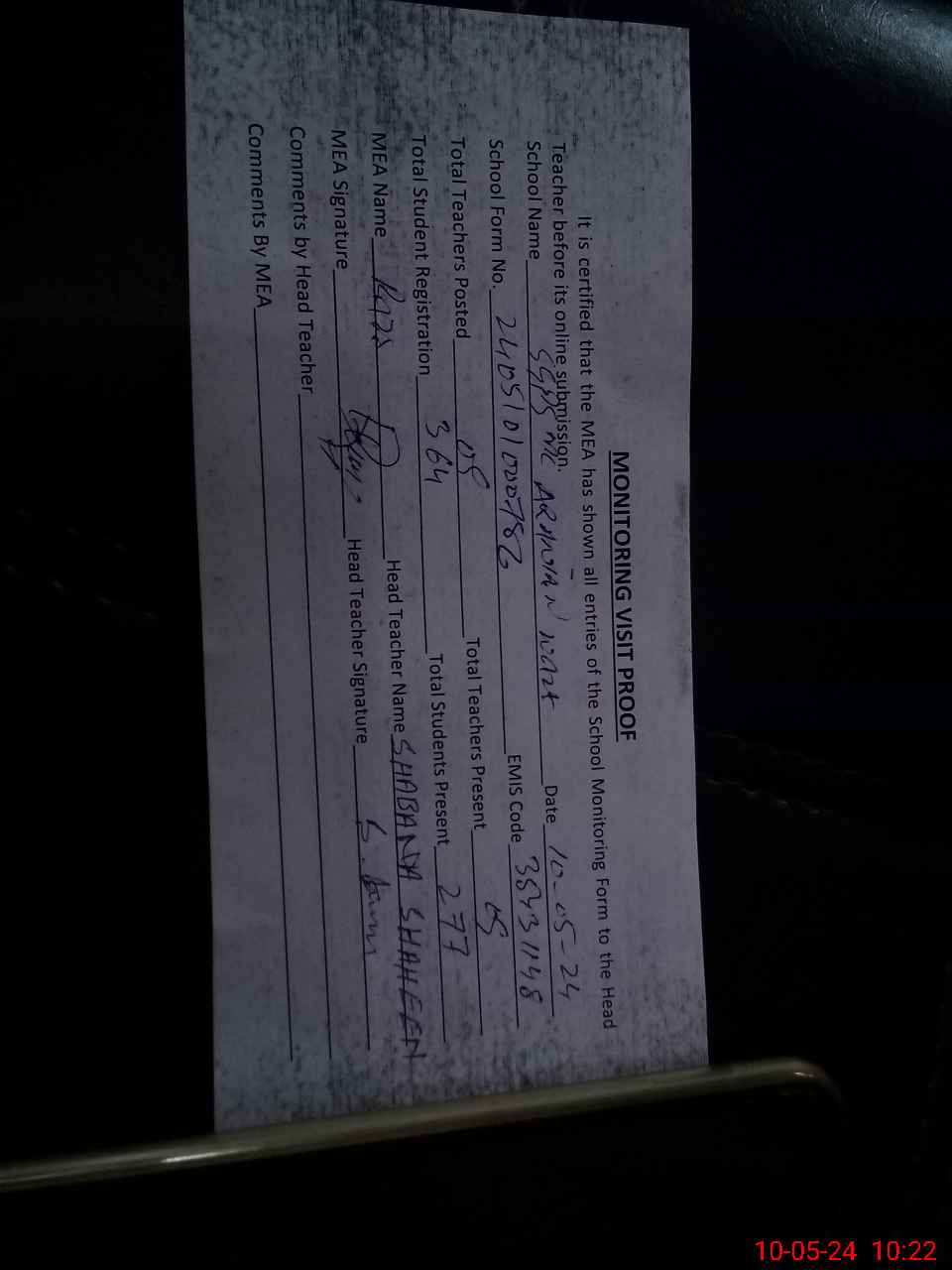 | Name: SH**** SH**** Designation: (School Headmaster's/Headmistress's) PST Phone/Cell Number: 03**** |