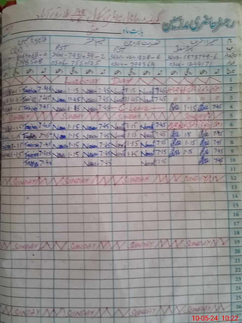 | CNIC | Full Name | Designation | R/C | Absence During Last Calender Month |