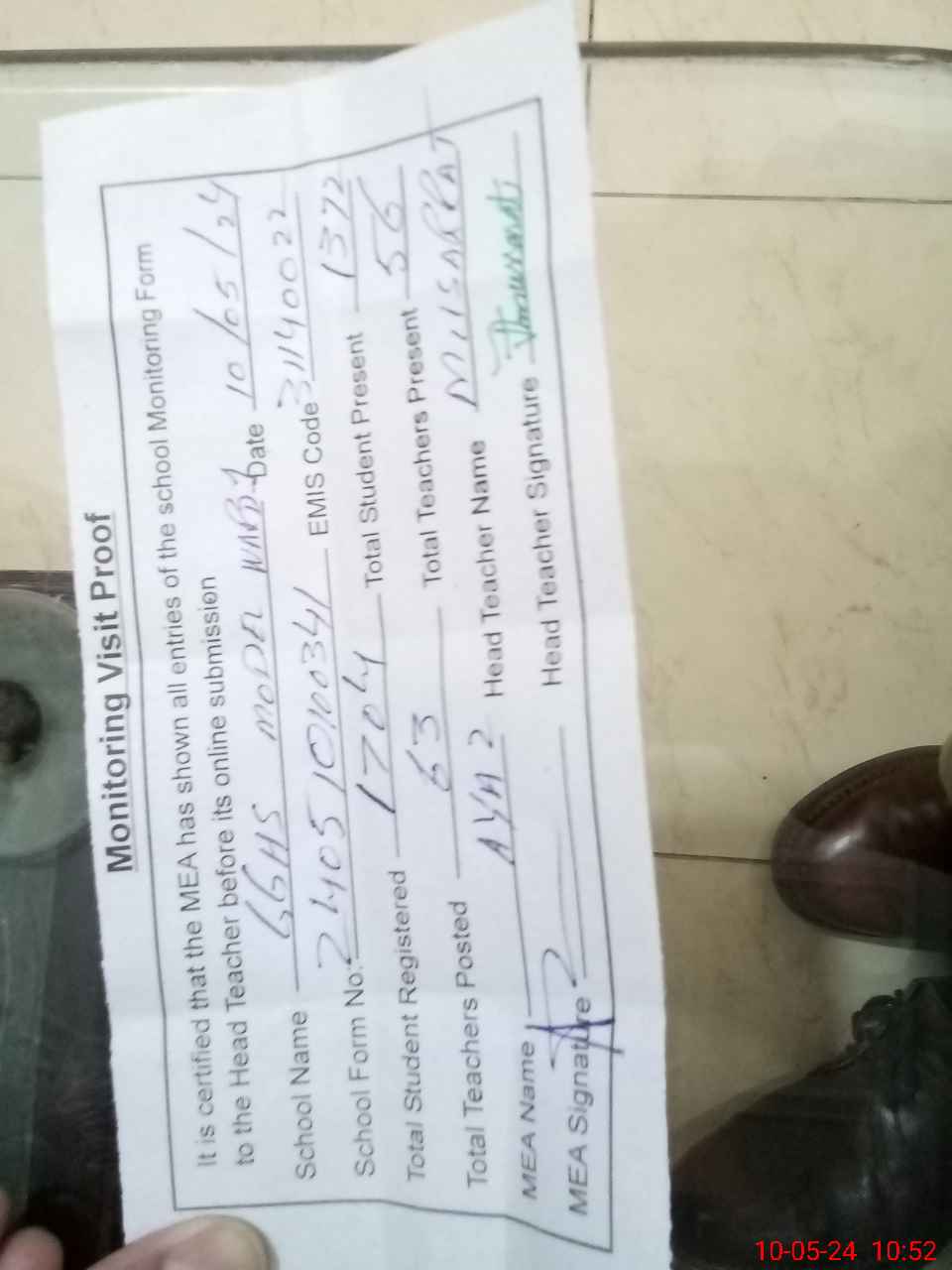 | Certified that this School was Inspected by the Undersigned MEA/DMO Today and the Information Stated Above is as Per Record. | |||||