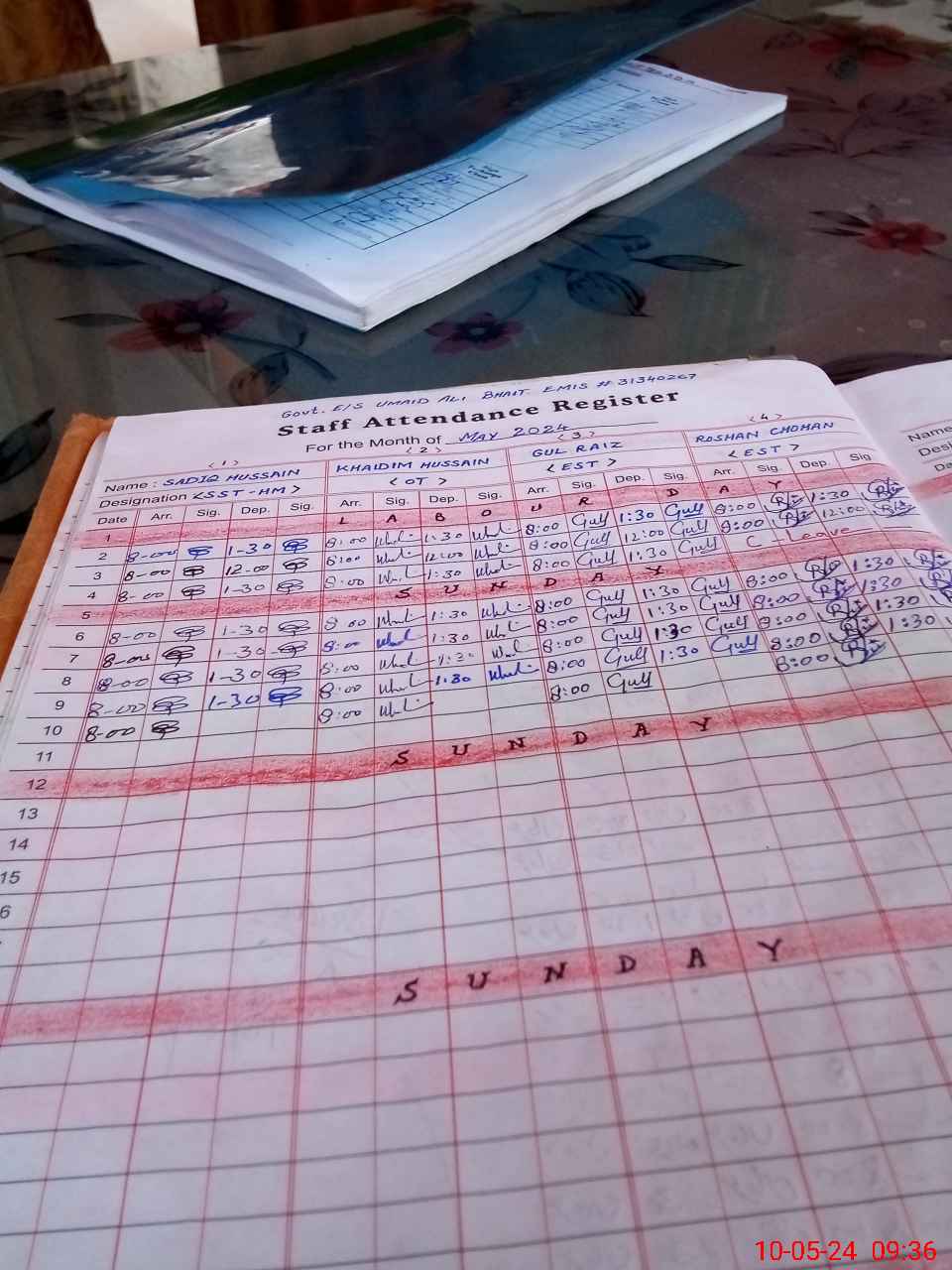 | CNIC | Full Name | Designation | R/C | Absence During Last Calender Month |