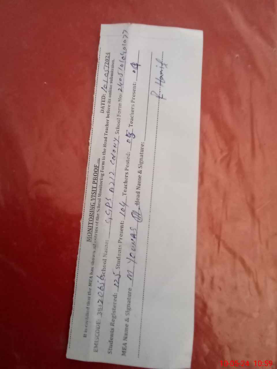 | EMIS Code: 38420656 | Name of School: GGPS AZIZ COLONY | |||