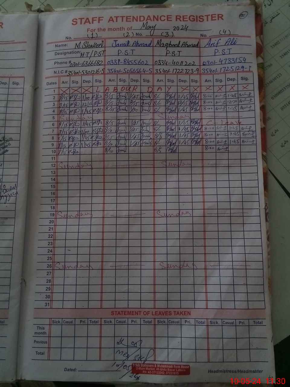 | Name: Mu**** Sh**** Designation: (School Headmaster's/Headmistress's) PST Phone/Cell Number: 03**** |