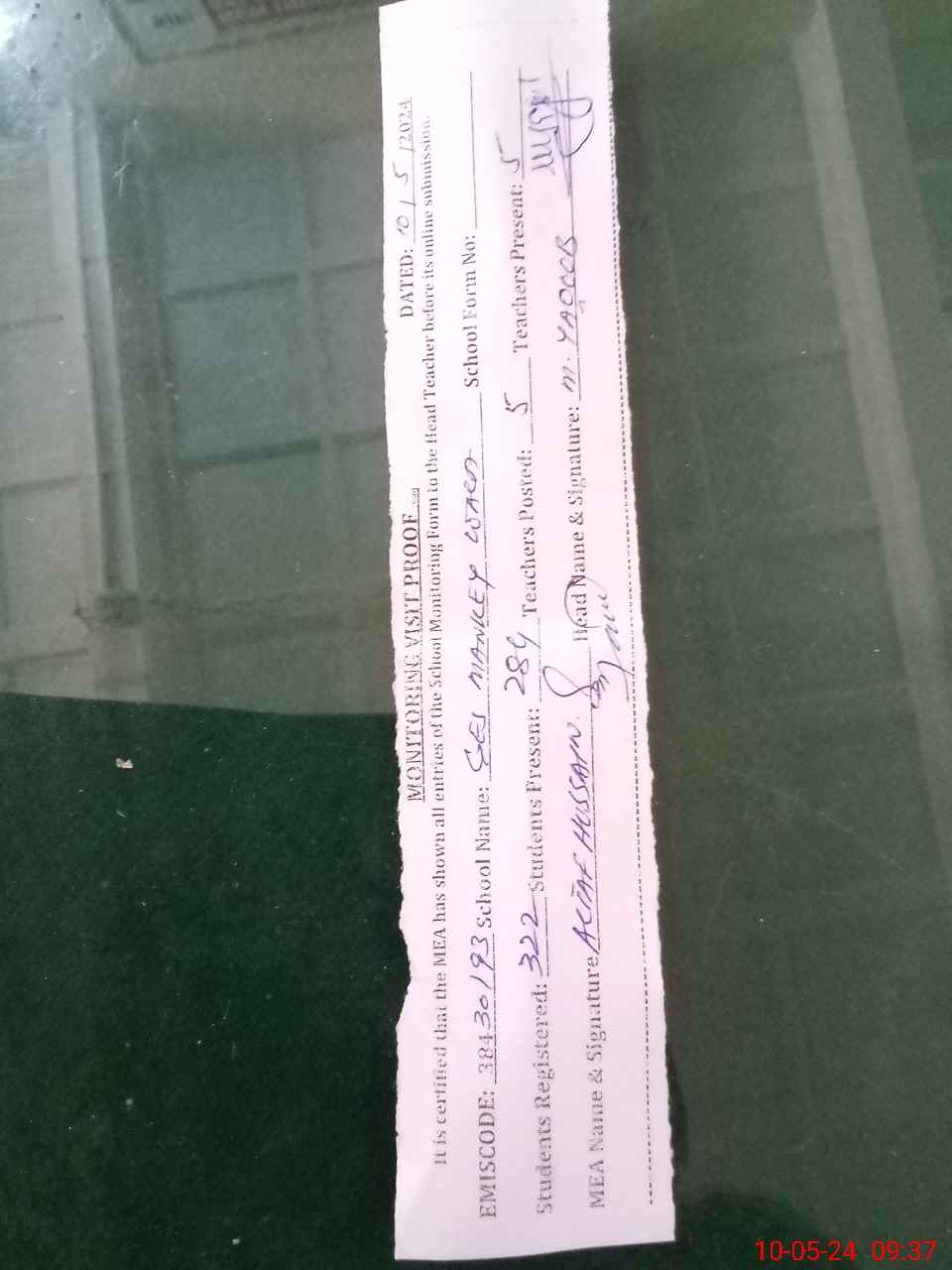 | Monitoring Date: 10-05-2024 | Start Time: 10-05-2024 09:11 AM | End Time: 10-05-2024 09:42 AM | Name of MEA: AL**** HU**** | |