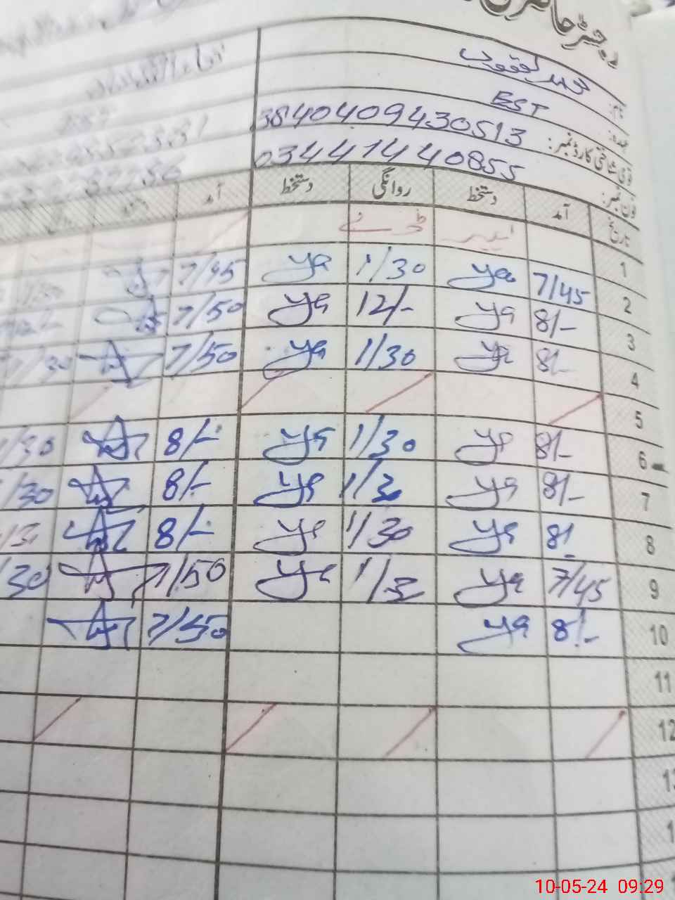 | CNIC | Full Name | Designation | R/C | Absence during last cal. month |