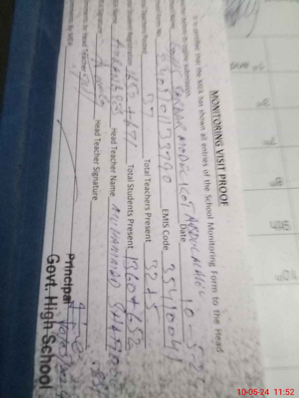 | Name: Mu**** Sh**** Designation: (School Headmaster's/Headmistress's) Sst Phone/Cell Number: 03**** |