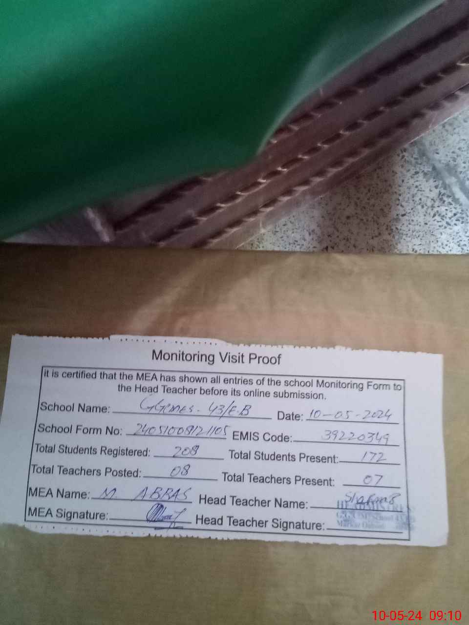 | EMIS Code: 39220349 | Name of School: GGCMES 43 EB P/O KOT KHUDA BUKHSH | |||