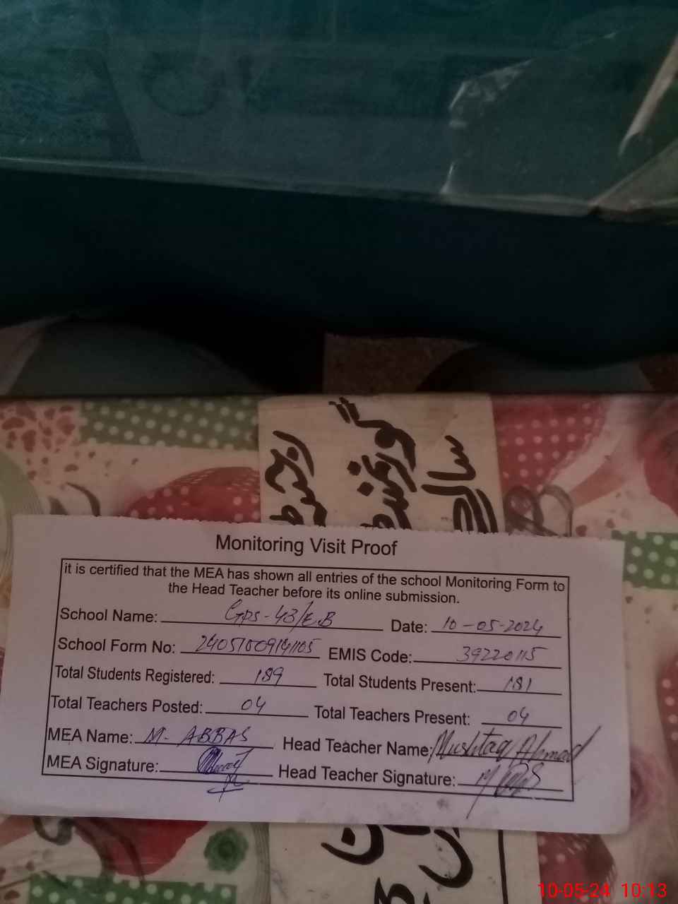 | EMIS Code: 39220115 | Name of School: GES 43 EB | |||