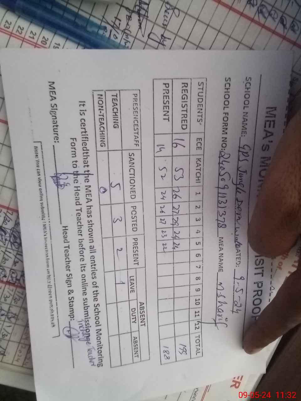 | Attendance Register | Head Teacher | MEA with School | Visit Proof |