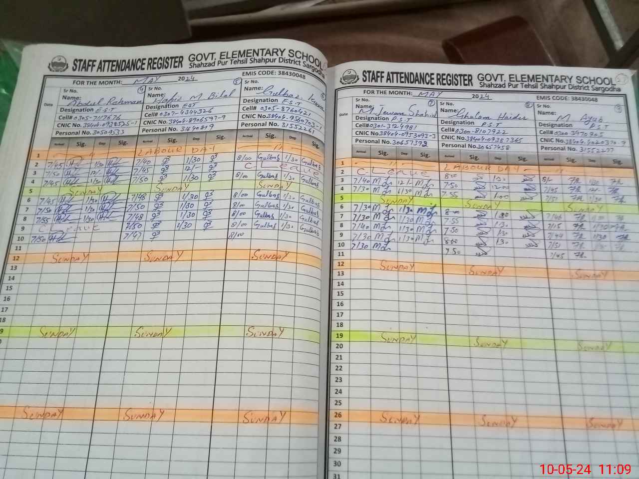 | CNIC | Full Name | Designation | R/C | Absence During Last Calender Month |
